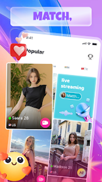 The application features real-time video chat capabilities, allowing users to see and hear their conversation partners, fostering a more personal interaction. Users can easily switch between chats to meet new individuals and enhance their social experience. Additionally, Starlix supports text messaging and emojis, adding a fun layer of expression during video calls. Overall, Starlix stands out as an interactive platform for those looking to expand their social circles.